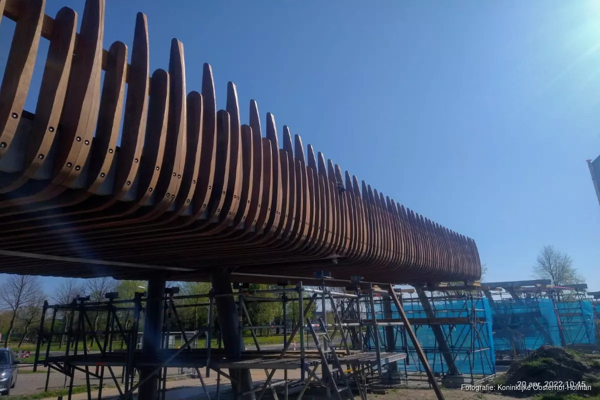 De brug moet eind mei klaar zijn. Zwaan: ‘In totaal worden er 13 brugdelen geplaatst. De bedoeling was eind maart maar door corona vielen er mensen uit bij ons en onze toeleveranciers. Dus hebben we ons tempo aan moeten passen. Want voorwaarde is wel dat we het veilig doen en met de juiste materialen.’